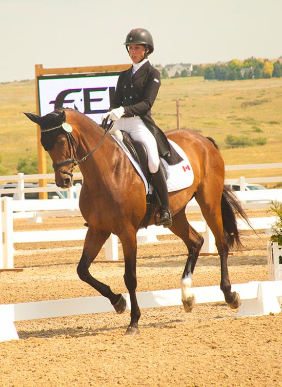In the FEI Young Rider Dressage Individual Test, Emily Ferguson, 21, of Winnipeg, MB, who was representing the combined Ontario/Manitoba/Alberta Team, was the top-placed Canadian individually. Partnered with her 13-year-old Dutch Warmblood gelding, Wrazzmatazz (Jazz x Darwin), she finished in fifth place with a final score of 67.211%.