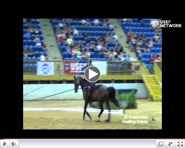 | Watch video of Elizabeth Iaonnou's freestyle test on USEF Network (Courtesy of JC Enterprises Vaulting Videos - http://vaultingvideos.com) |