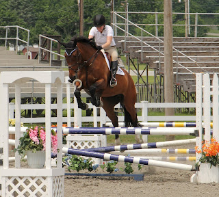 That Winning Feeling! and It's Not Just About the Ribbons are nightstand staples now. Fast forward to last week's show preparation. Following Jane's advice, I visualized my successful rounds, making "mind's eye movies" of riding to the perfect distances, well ridden lines, and successfully negotiated triples. I tried to pay more attention to my language. Jane says that the subconscious does not recognize the word not. Thus, saying, "I will not fall off" becomes " I will fall off" to your goal oriented subconscious.